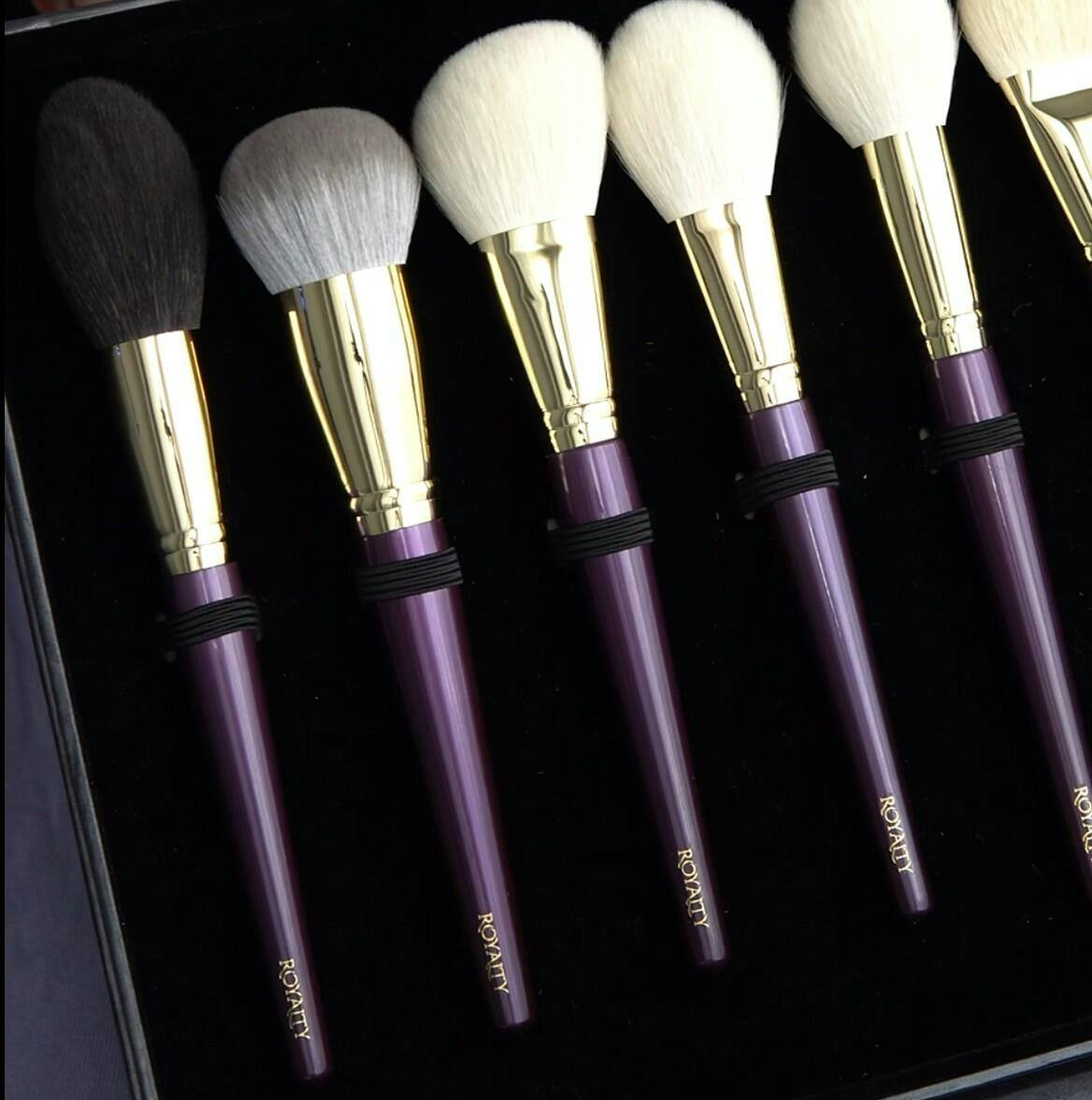All brushes are handcrafted and made with the highest quality materials fit for the function of that brush ranging from synthetic to natural hair. All brushes have a solid wooden handle and gold brass ferrule. Our handles are coated with 4-5 layers of colour and lacquer which gives it a rich, royal purple shine that would look magnificent both in your kit or on your makeup vanity!